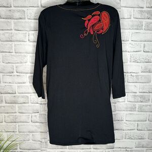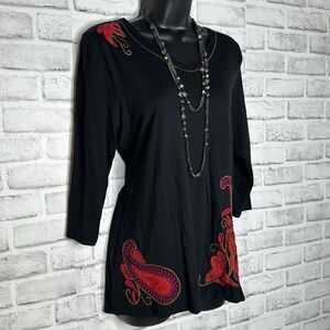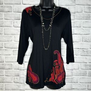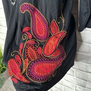 J. Jill Paisley Embroidered Tunic Top Size Medium Petite Boho Hippie Pima