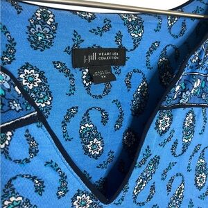 J. Jill Wearever Boho Paisley Floral Balloon Sleeve Top Blouse Mature in Blue, size 2X.