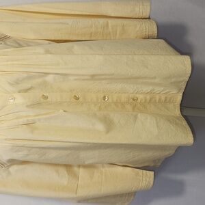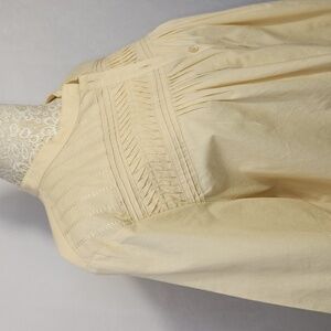 J Jill Pale Yellow Button Down Baby Doll 3/4 Sleeve Embroidered Blouse Size M