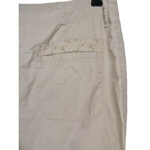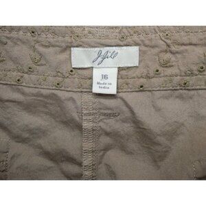 J Jill Pants Size 16 Tan Khaki Beige Cargo Zip pockets Lightweight Cotton Eyelet