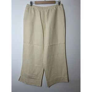 J Jill Pants Womens Medium Ivory Cream Linen Pull On Stretch Ankle Length