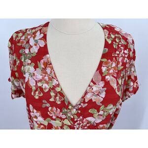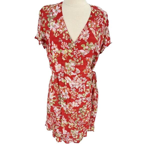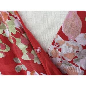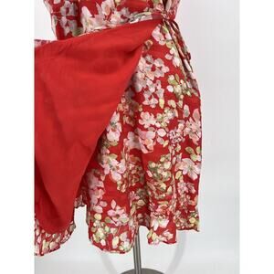J. Jill Papaya Floral Ruffle Wrap Dress Size Medium Short Flutter Sleeves Lined