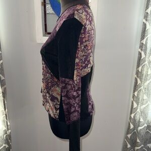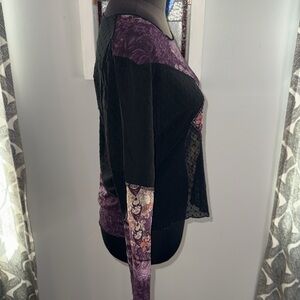 J Jill Patchwork Mesh Stretch Ling Sleeve Top SZ Small Petite