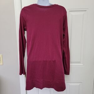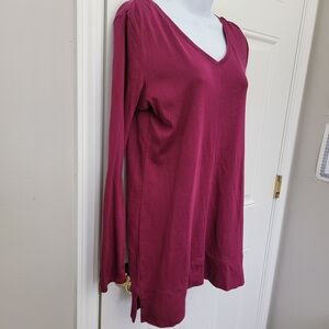 J Jill Perfect Pima 100% Pima Cotton Burgandy V Neck Tunic Top Size Small
