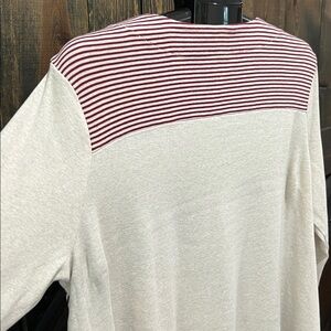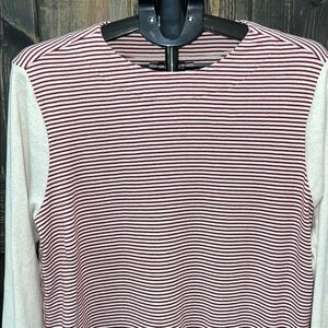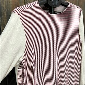 J Jill brand Perfect Pima long sleeve sweater. Cream / Beige with deep red / burgundy stripes. Size x-large petite. Super soft. Stretch material. Light yet still cozy. Quality feel. Relaxed fit. Great closet staple piece. Dress up or down. Wear alone or layered. Preloved. Please see all photos for condition.