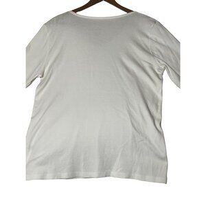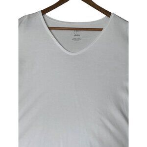 Pima Cotton Tee-Shirt Elbow Sleeve V-Neck White