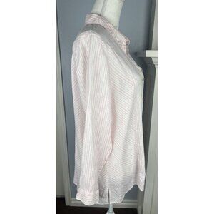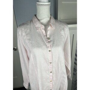 J Jill Petite Large Love Linen Pink White Striped Button Down Shirt Long Sleeve