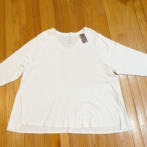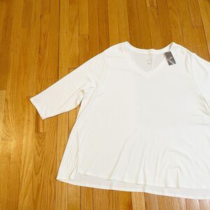 J Jill Pima Cotton 3/4 Sleeve V Neck Top T Shirt Plus Size 4X White NEW WITH TAG