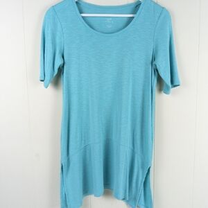 J Jill Pima Cotton Dipped Hem Tunic Blue Short Sleeve Top Size XS Pullover