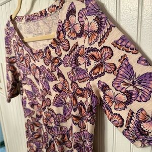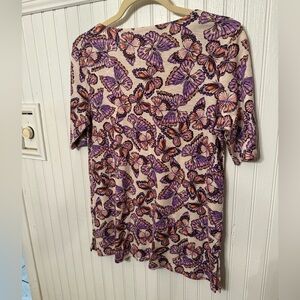 J. Jill Pima Slub Scoop Neck Cotton Butterfly Side Slit Small Tee