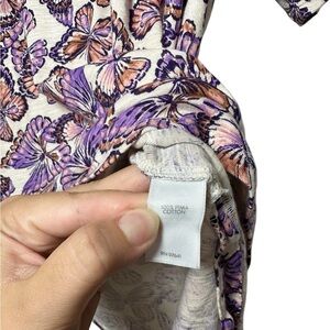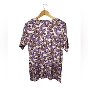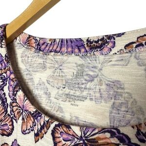 J. Jill | Pima Slub Scoop Neck Side Slit Tee | Purple Butterfly Print | Size L