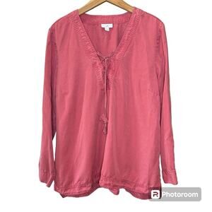 J. Jill Pink Long Sleeve Lightweight Tie Front Bohemian Blouse Size XL