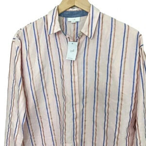 J. Jill Pink Metallic Striped Everyday Button Front Shirt XS