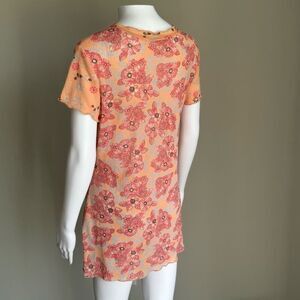 J. Jill Early 2000’s Pink & Orange Floral Semi-Sheer Mesh Lettuce Hem Scoop Neck Short Sleeve Top, Size M, Has A Lot Of Stretch And Will Fit Up To A Women’s XL, Great Condition