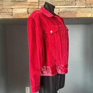 J. Jill Oversized Corduroy Velvet Accent Jean Jacket, Textured Silver Button Front and Cuff Closure, Two Chest Button Flap Pockets