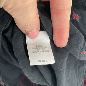 J Jill Pintucked Lace Trim Midi Dress Tiered A-Line Black Red Women Medium Boho
