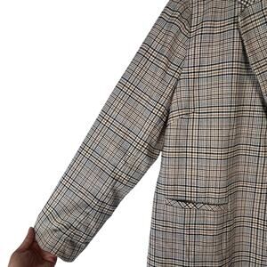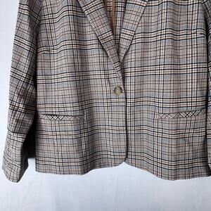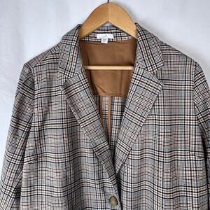 J Jill Plaid Blazer Sz M Brown Single Button Oversized Equestrian Preppy Capsule