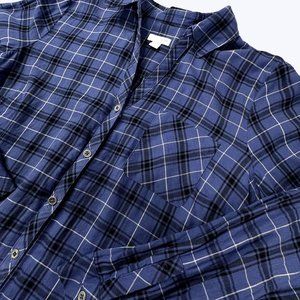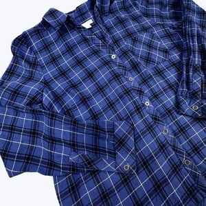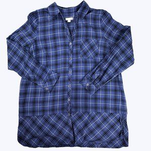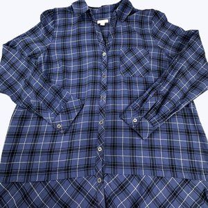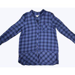 J. Jill Plaid Blouse Size Medium Light Weight Button Front Blue