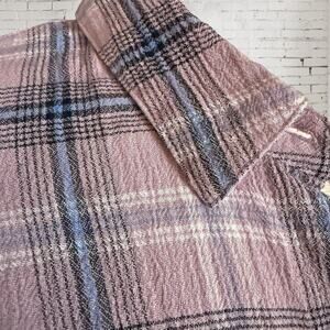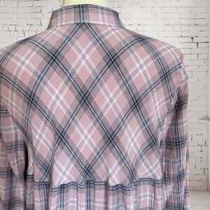 J. Jill Plaid Purplish Pink & Blue Plaid longer length Blouse with Pocket Size Medium ... Crepe Like Cotton blend Fabric ... Perfect with Jeans ..