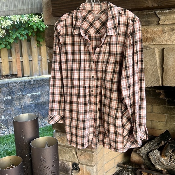 J Jill Plaid Button Down Large Petite. Has pockets!!
