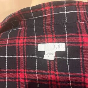 J. Jill Plaid Button Up Red Black Tunic Long Sleeve Shirt, peplum, size Large