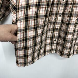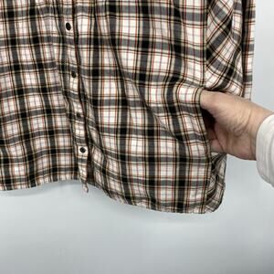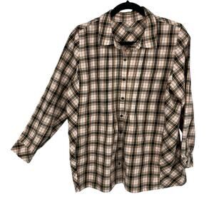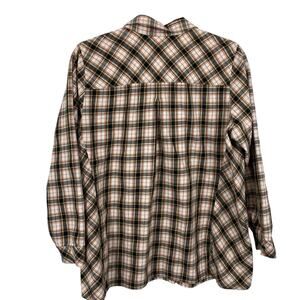 J Jill Plaid Button Up Shirt Size Large Embroidered Plaid Pleated Pockets