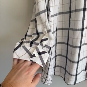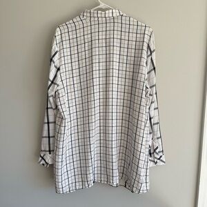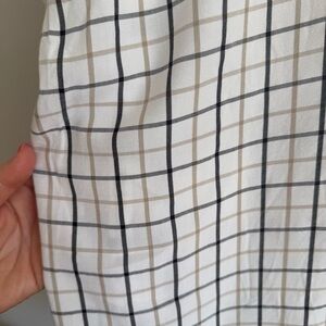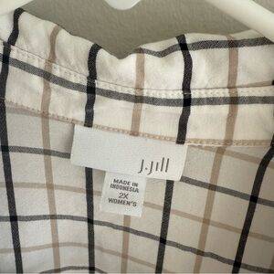 Stylish white, tan, and black plaid button-up shirt. Perfect for casual wear. Size 2x. Excellent preowned condition