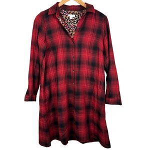 J. Jill Plaid Flannel Long Sleeve Women's Size XS Red Black Tunic Length Button Up Floral Shirt
