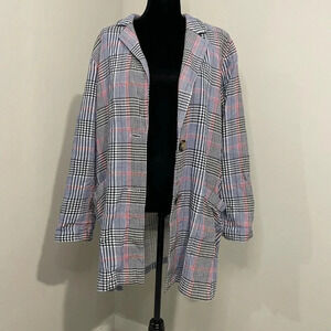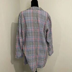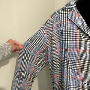 J. Jill Plaid Oversized Longline Cotton Blazer Red, White, and Blue