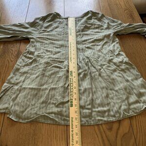 J Jill Pleated Tunic V Neck Split Hem Striped Sage Green Loose Fit Size Petite S