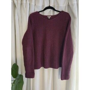 J Jill Plum Heather Purple Chunky Ribbed Knit Sweater Size Med Petite Boxy Wool