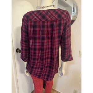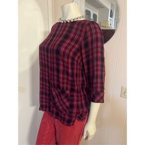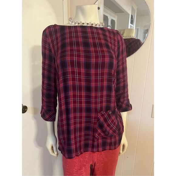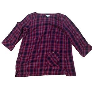 J. Jill Plum Plaid 3/4 Sleeve Soft Rayon Tunic W/Pocket Size Sm