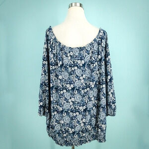 J. Jill Plus Size 4X Blue Floral Print Smocked Off the Shoulder Long Sleeve Cotton Modal Blend Knit Top Shirt Tee T-shirt