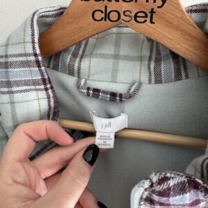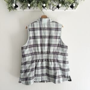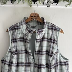 J. Jill Plus Size Jade Plaid Quilted Full Zip Curved Hem Vest 1X