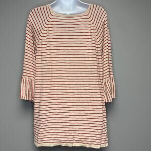 J. Jill Plus Size Linen Blend Boho Nautical Striped Bell Sleeve Top Womens 3X