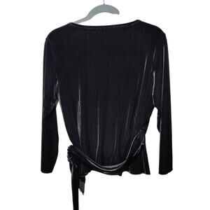 J. Jill Plus Sz 2X Black Velvet Long Sleeve True Wrap Top Blouse V Neck Stretch