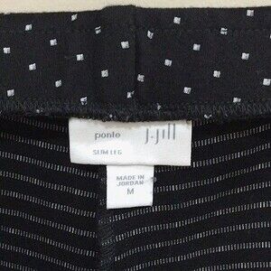 J. Jill Polka Dot Pants Black Ponte Knit Slim Leg Sz Medium Elastic Waist
