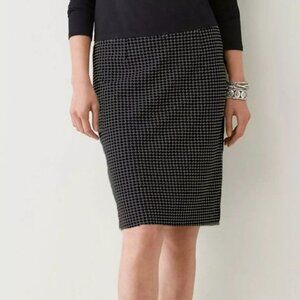 J. Jill Ponte Knit pencil skirt in a gray and black mini houndstooth pattern.