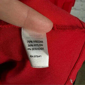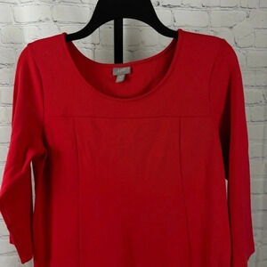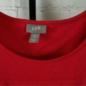 J. Jill dress size petite medium. Red, 3/4 length sleeves. Stretch. Scoop neck. Viscose, nylon and spandex blend Good condition, except for some pilling under arms. Smoke free home.