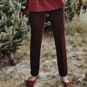 J. Jill Ponte Slim Leg Burgundy Black Plaid Check Holiday Knit Pants