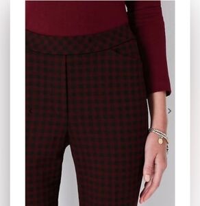 J. Jill Ponte Slim Leg Pants. Burgundy red and black plaid print. Super soft thick ponte knit fabric. A fun print that is perfect for Christmas.