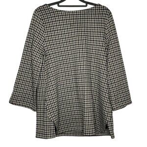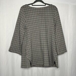 J Jill Ponte Tunic Gray Black White Houndstooth Boatneck ¾ Sleeve Size Medium