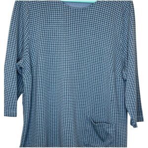 J. Jill Ponte Tunic Top Houndstooth Blue Pocket - Size 3X