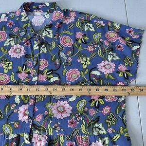 J Jill Popover Top Blue Floral Print Short Sleeve Medium Petite