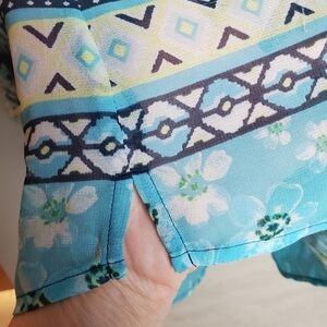 J. Jill Popover Tunic Blouse Womens Small Oversized Blue Floral Sheer V-neck