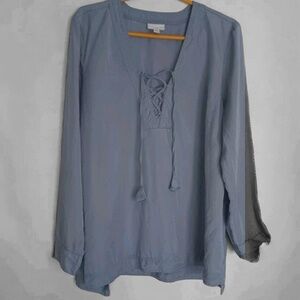 J. Jill Popover Tunic Top Chambray Long Sleeve Tunic Size L