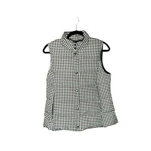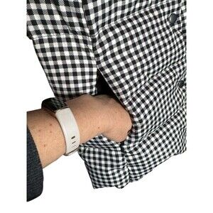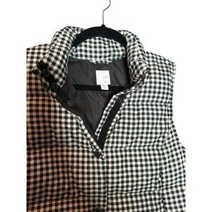 J Jill Puffer Vest Petite Small Black White Check Snap Up Zip Pockets 80% Down Filled small mark on collar, shown in third photo. Fits a little bit big.