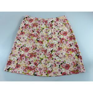 J Jill Pull On Skirt Cotton Modal Pink Green Floral Print Women's S Small
