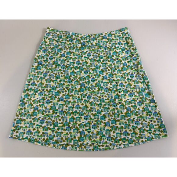 J Jill Pull On Skirt Cotton Modal Tropical Houses Palm Trees Print Women's S