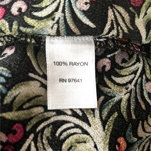 J. Jill pullover top in a black floral print with 3/4 sleeves and peplum in center front and back, but not at the sides. The design hides the tummy and butt, while slimming your silhouette. Made of lightweight and breathable woven rayon fabric to ensure comfort, and the easy care. The colorful purple, pink, green and white floral pattern adds a touch of nature and bohemian charm to the top, making it a versatile addition to any wardrobe for all seasons. Very gently preowned - Like new!
